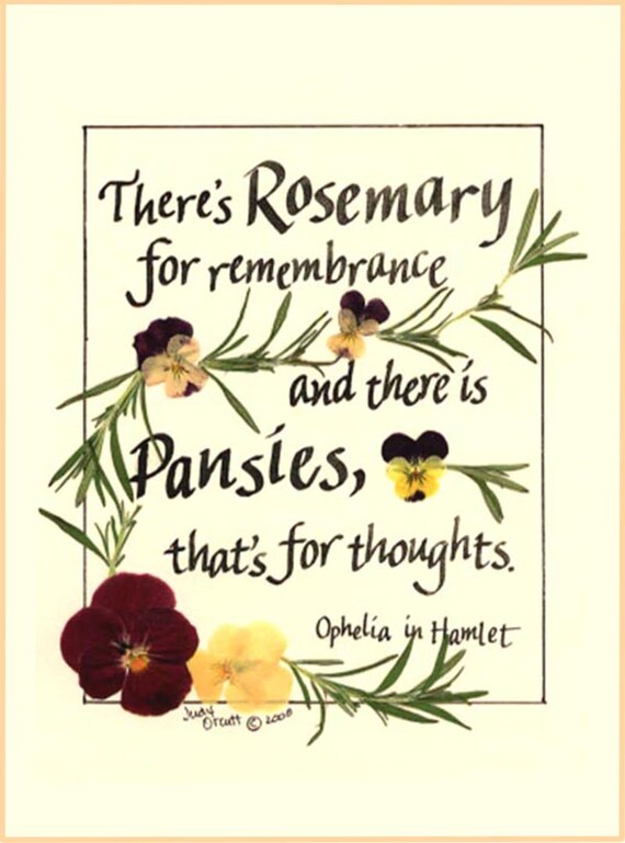 Shakespeare Quote Card. Hamlet, Ophelia, Renaissance, Valentine