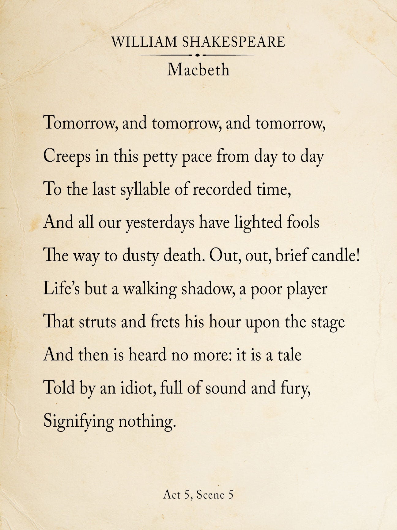 Macbeth Tomorrow and Tomorrow Shakespeare Book Page Style Literary
